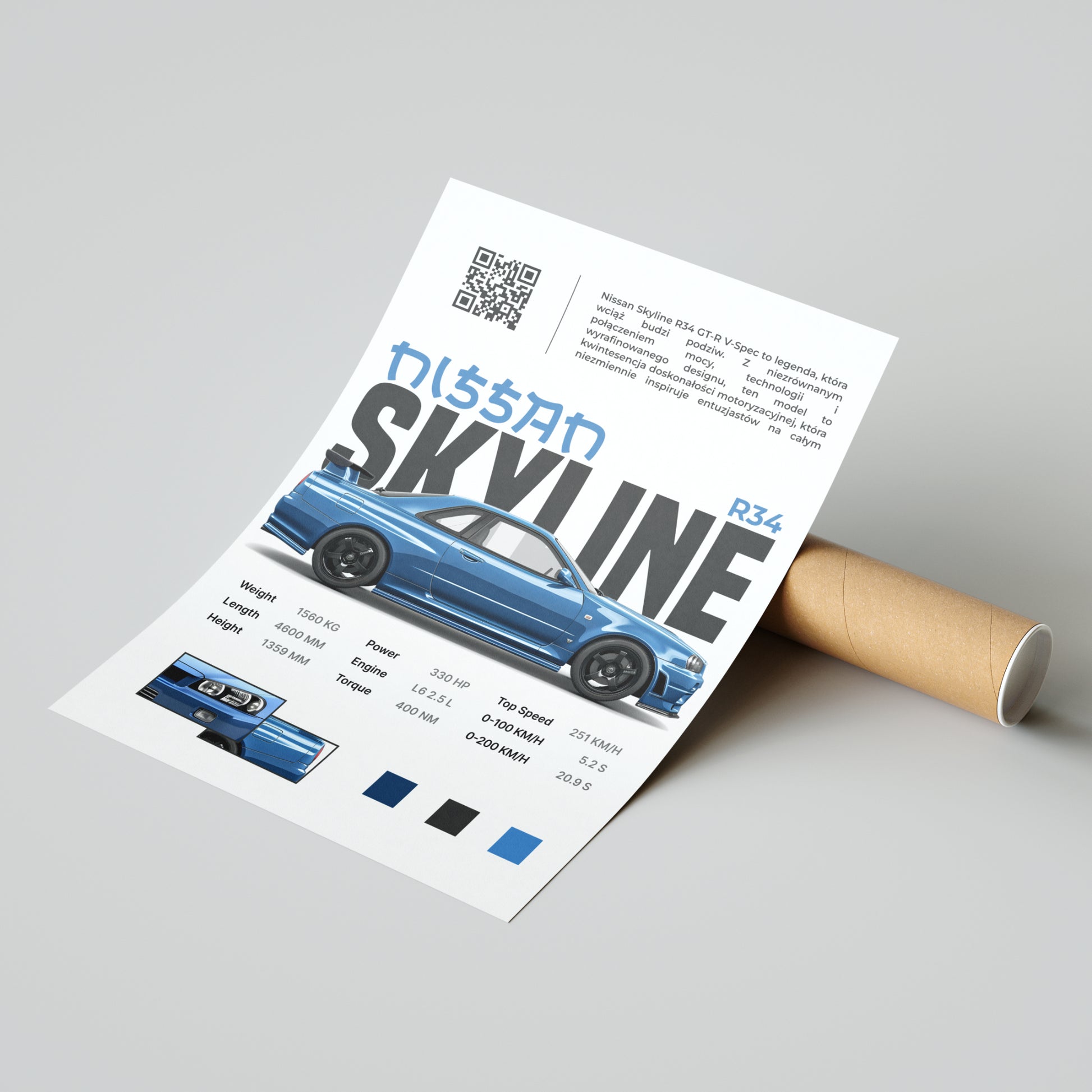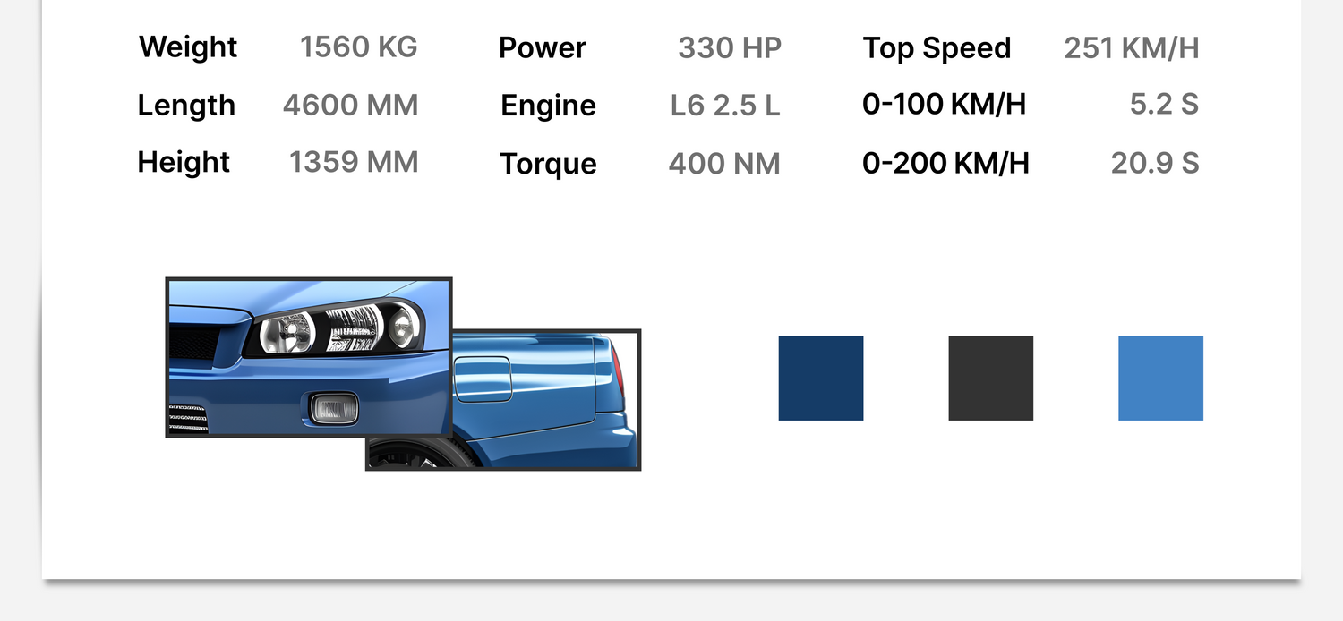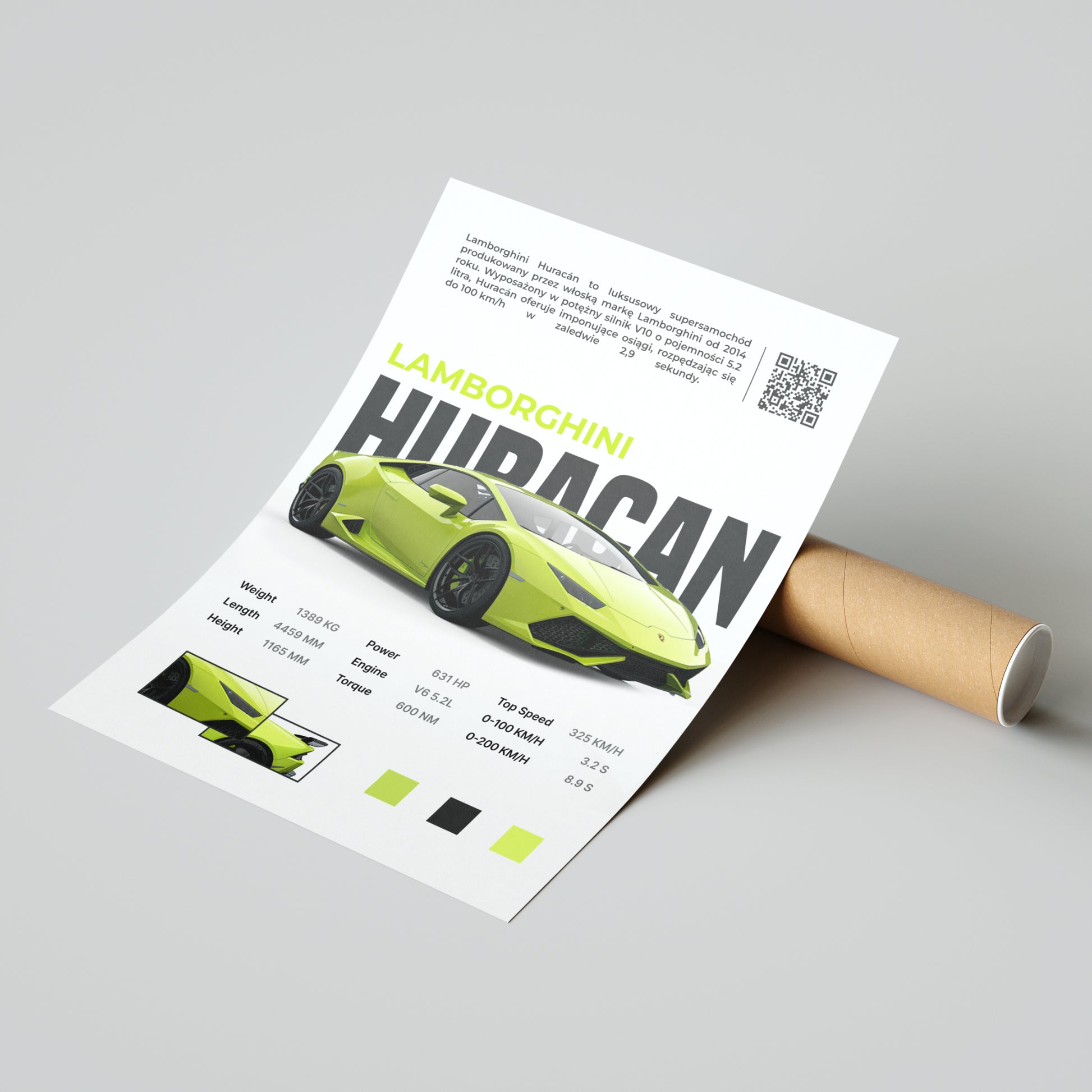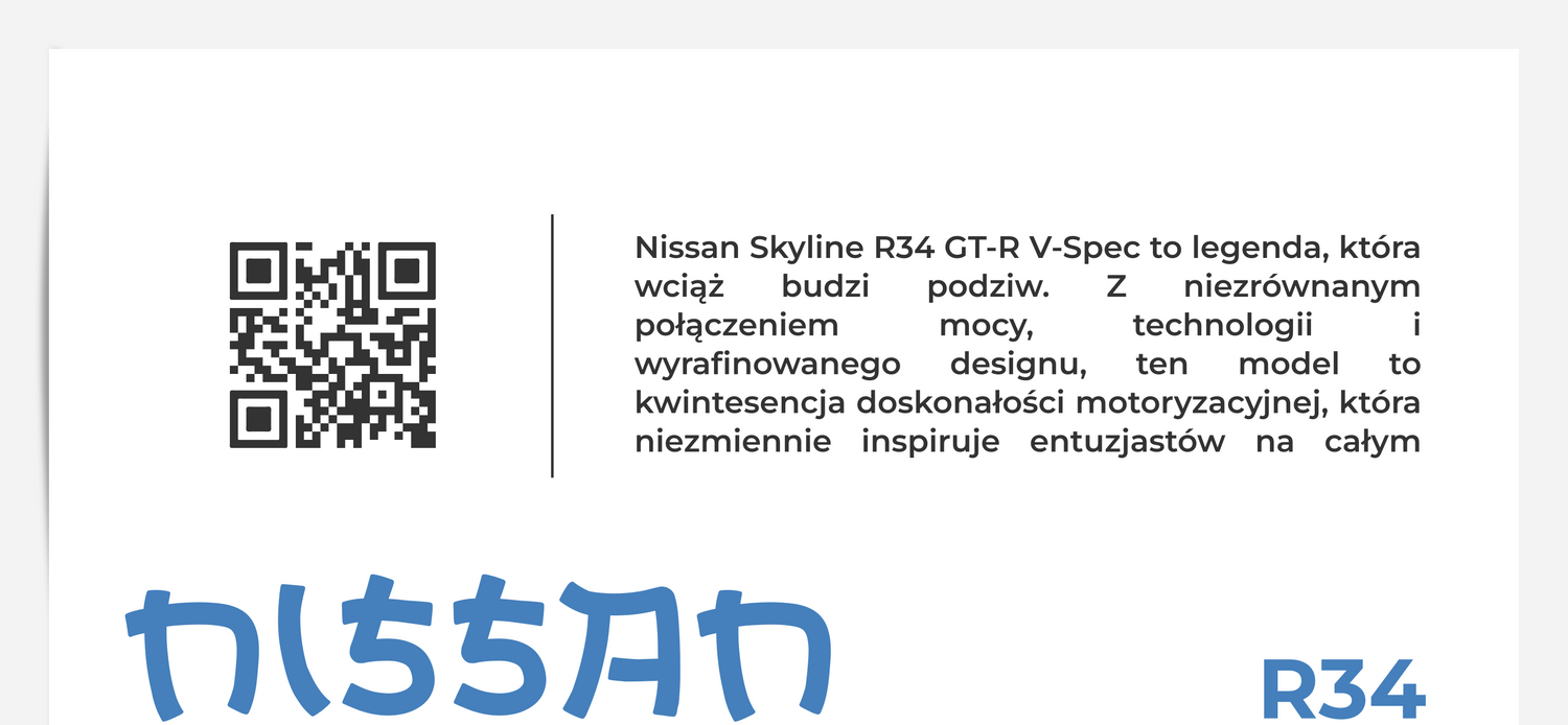 Dodajemy najważniejsze szczegóły techniczne Twojego samochodu. Dodatkowo plakaty wzbogacamy o detale takie jak zbliżenia na model.